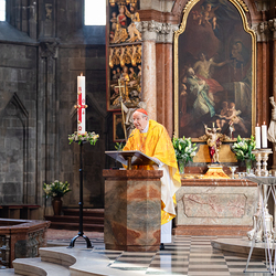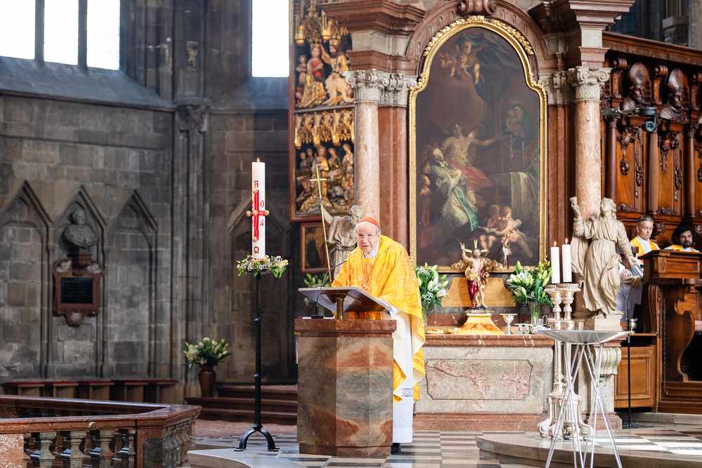 Kardinal Schönborn feierte mit den MitarbeiterInnen der Erzdiözese Wien die traditionelle heilige Messe nach Ostern.